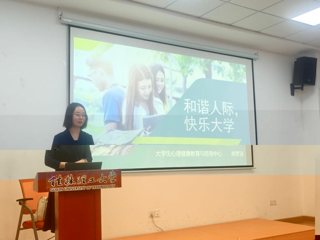 為了讓新生們更好的适應大學生活,數學與統計學院邀請了大學生心理中心主任肖夢潔老師于2024年10月18日在15205開展以“和諧人際,快樂大學”為主題的心理健康講座。